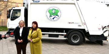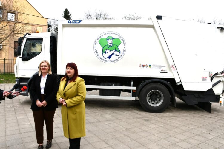 Kľúče od nového komunálneho vozidla na zber odpadu dnes (v pondelok 2. marca 2026) napoludnie pri trhovisku z rúk predsedníčky Obce Báčsky...