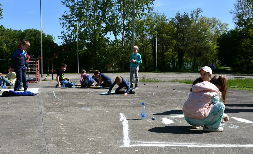 Pre najmenších pripravili kriedy a tí potom mali možnosť kresliť na betónové javisko na ihriskách motívy s tematikou ochrany prírody a zároveň tým vyjadrili svoju tvorivosť.