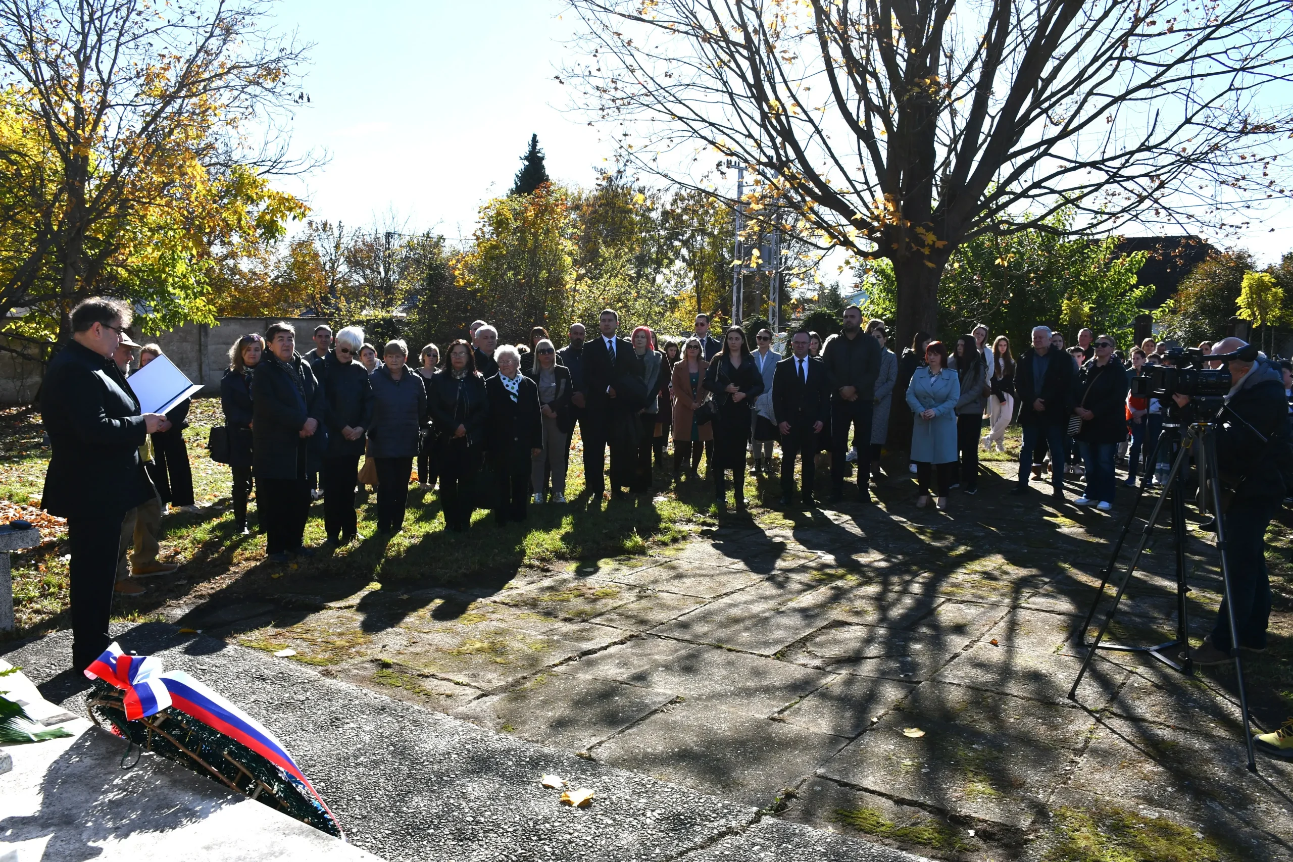 Potom sa zástup žiakov a občanov pešo pohol k spoločnej hrobke padlých bojovníkov na partizánskom cintoríne, kde veniec a kvety okrem predstaviteľov samosprávy položili aj spolkárky zo Spolku petrovských žien, Miestnej organizácie penzistov Báčsky Petrovec i žiaci. Prihovoril sa i poverenec miestnej samosprávy pre Báčsky Petrovec Ján Lačok a Ksenija Vujačićová veršami barda našej literatúry Paľa Bohuša uzavrela tento spomienkový program.