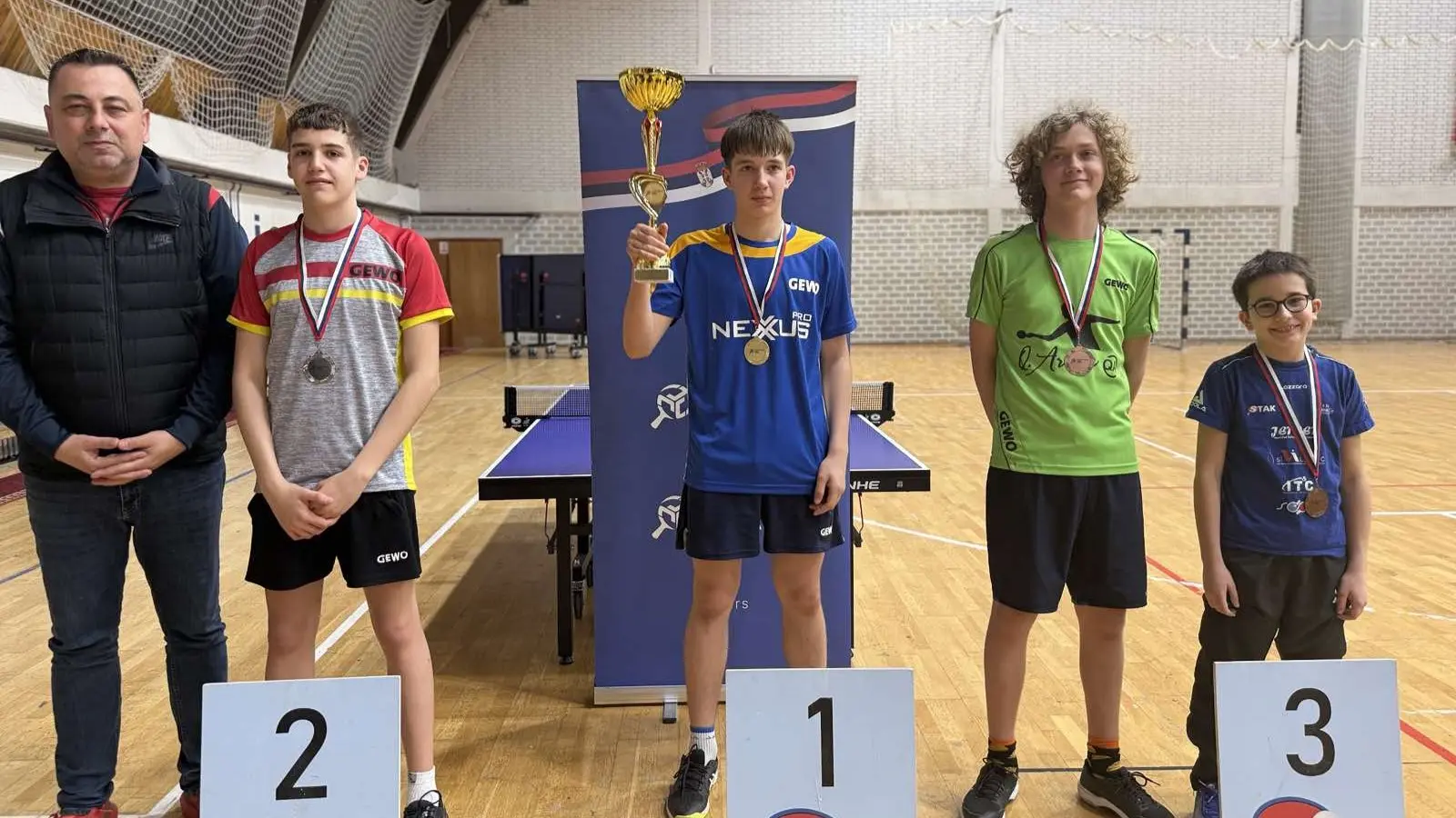 Svoj výnimočný výkon korunoval aj v štvorhre, kde spolu s Brankom Dragoljevićom z Nového Sadu predviedli výbornú zohratosť a zaslúžene si vybojovali zlaté medaily. Ich hra potvrdila, že patria k absolútnej špičke kadetského stolného tenisu v Srbsku.