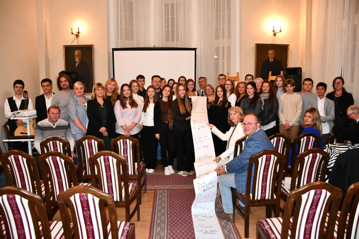 Na úvod sa slova ujala riaditeľka školy Daniela Marková a privítala predstaviteľov Národnostnej rady slovenskej národnostnej menšiny, Matice slovenskej v Srbsku, školského výboru, hostí z partnerského Gymnázia na Párovskej ulici v Nitre, ktorí pricestovali do Petrovca na návštevu petrovského gymnázia, bývalých kolegov a média.