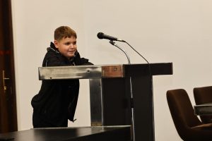 Žiakov v obci privítala predsedníčka obce Viera Krstovská so svojimi spolupracovníkmi: Rastislavom Labátom, náčelníkom Obecnej správy, a Jaroslavou Čániovou-Jevićovou, zástupkyňou náčelníka OS.