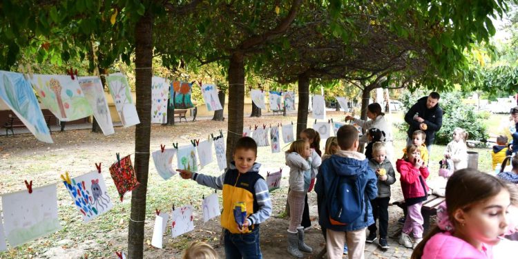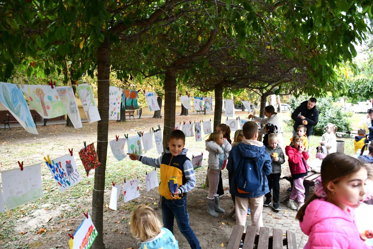 Po ukončení kresliaceho času v parku medzi stromami usporiadali aj dočasnú výstavu z prác, ktoré vznikli na tábore.