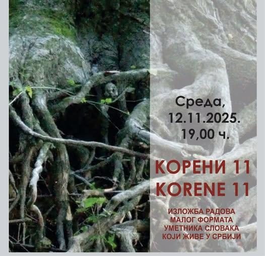 Výstava Korene 11 – výstava prác malého formátu slovenských umelcov v Srbsku bude dnes večer slávnostne otvorená o 19.00 h v Galérii Miry Brtkovej, ktorá pracuje v rámci Strediska pre kultúru Stará Pazova.