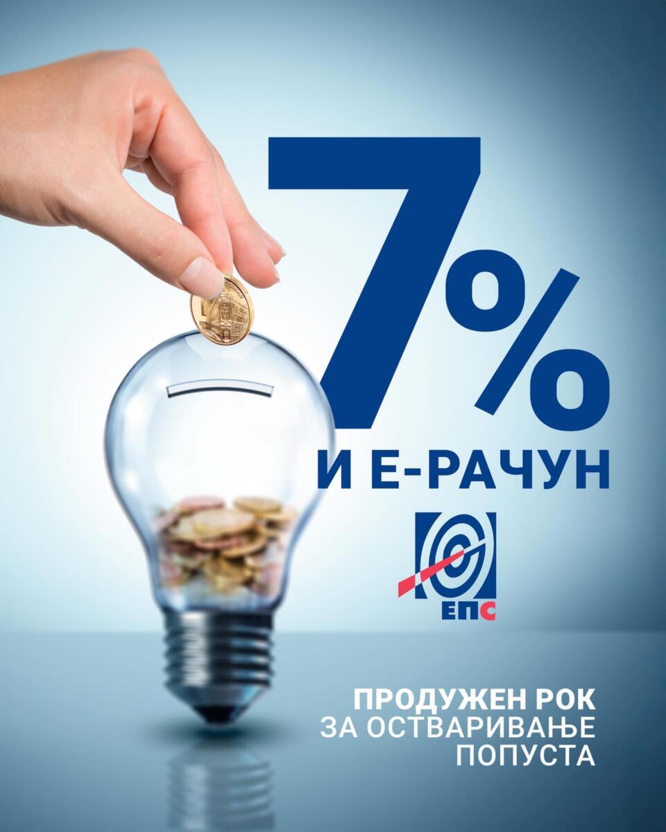 Spoločnosť Elektroprivreda Srbije (EPS) informuje, že pravidelným platiteľom aj vo februári umožnili dodatočný čas na uplatnenie sedempercentnej zľavy na všetky januárové účty zaplatené do 24. februára.