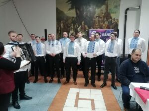 V poradí 36. Vinársky bál na úvod spevom spestrili členovia Mužskej speváckej skupiny Kultúrneho centra Aradáč pod vedením umeleckej vedúcej Vierky Godovej za hudobného sprievodu harmonikárov Martina Torňoša z Kovačice a Ivana Labáta.