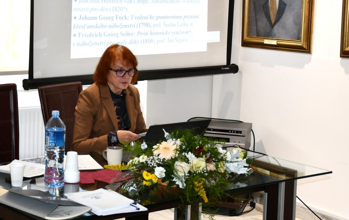 Dr. Zuzana Týrová a príspevok číta Dr. Anna Makišová