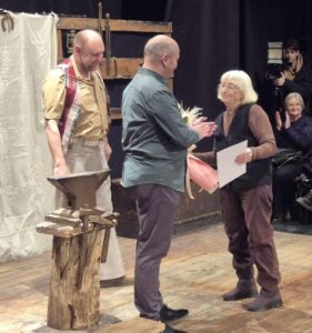 Pred predstavením Alexander Bako, herec a režisér SD VHV, privítal pri tejto príležitosti obecenstvo, a Zdenko Uheli, predseda SKUS hrdinu Janka Čmelíka, odovzdal Márii Chlebianovej ďakovný list za dlhoročnú ochotnícku prácu v divadle.