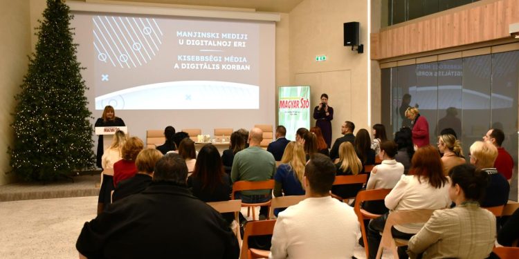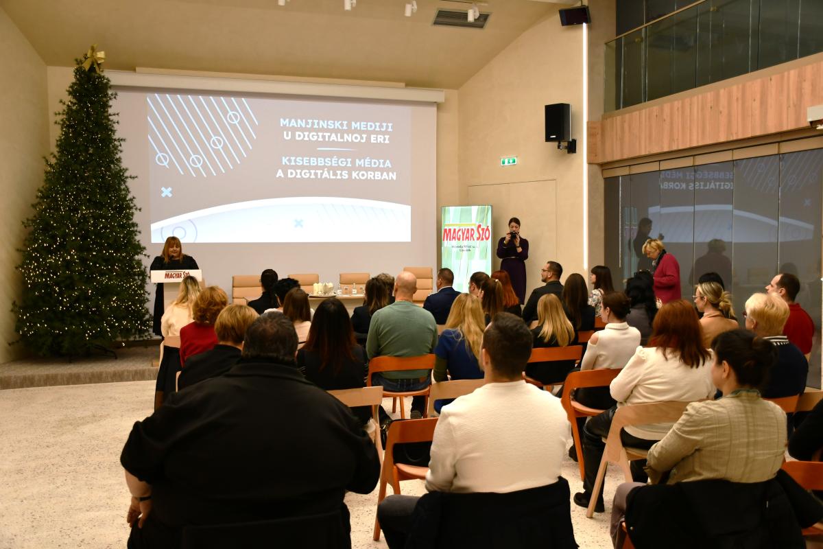 V konferenčnej sále NVU Magyar Szó sa včera uskutočnila konferencia Menšinové médiá v digitálnej ére, ktorú spoločne zorganizovali dve novinovo-vydavateľské ustanovizne – Magyar Szó a Hlas ľudu. Podujatie bolo zamerané na aktuálne výzvy, s ktorými sa menšinové médiá stretávajú v období zrýchlenej digitalizácie, ako aj na hľadanie riešení pre ich ďalší rozvoj.