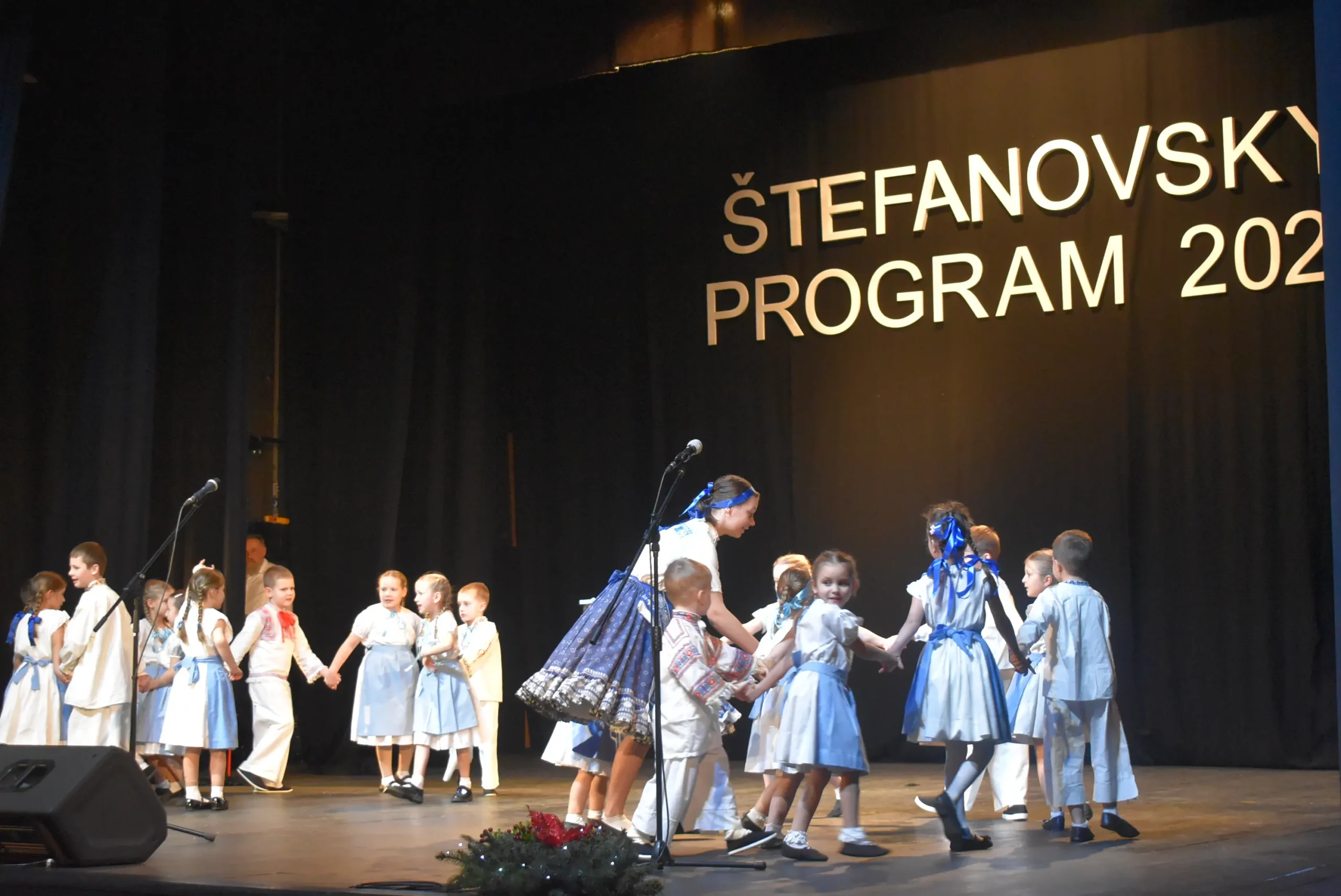 Na potešenie najmladších sa na javisku objavil aj dedko Mráz, ktorý v dobrej nálade rozdával darčeky všetkým deťom účinkujúcim v Štefanskom programe.