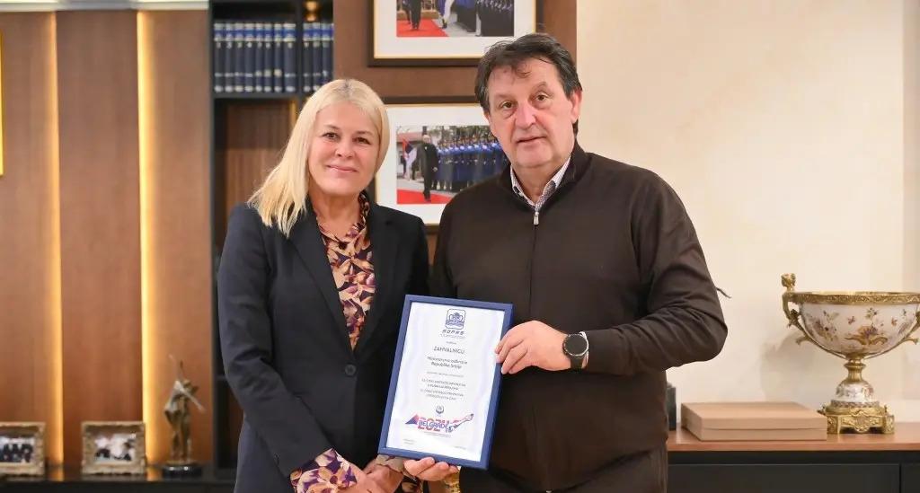 Pri tejto príležitosti Ostojićová odovzdala Gašićovi, ako aj Ministerstvu obrany, ďakovné listy za podporu pri organizácii Majstrovstiev sveta vo voľnom potápaní, bazénových disciplínach a Majstrovstiev sveta v plutvovom plávaní a rýchlostnom potápaní v bazéne.