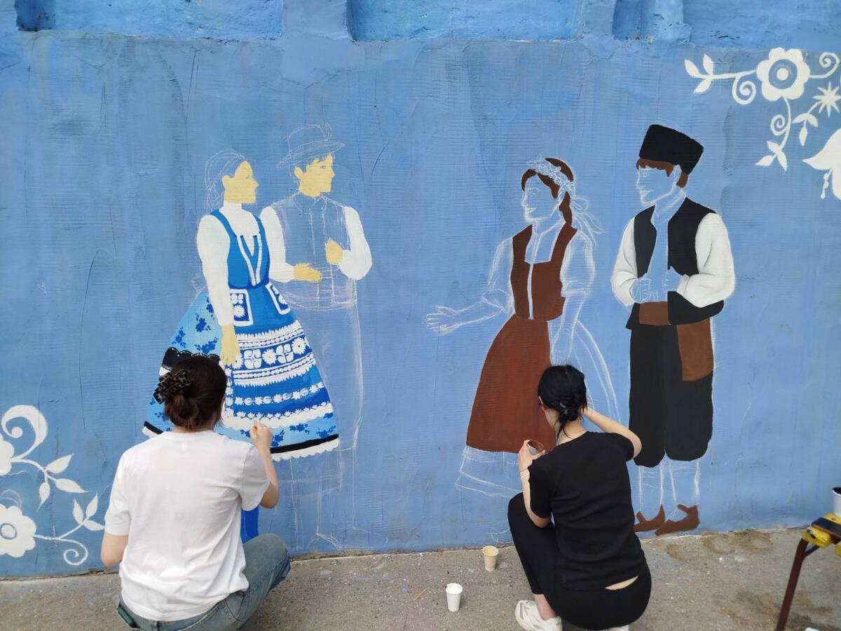 Motívy nástennej maľby so slovenskými a srbskými ľudovými odevmi, ktoré svedčia o multikulturalizme a vzájomnom spolunažívaní väčšinového národa s národnostnými menšinami, najmä so Slovákmi v Starej Pazove, navrhli Libuša Simendićová, profesorka zemepisu v obidvoch školách, ktorá sa najviac pričinila o celkovú organizáciu viacdňovej akcie, Daniela Đurićová, profesorka výtvarného umenia v gymnáziu, a žiaci menovaných škôl.