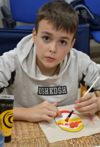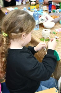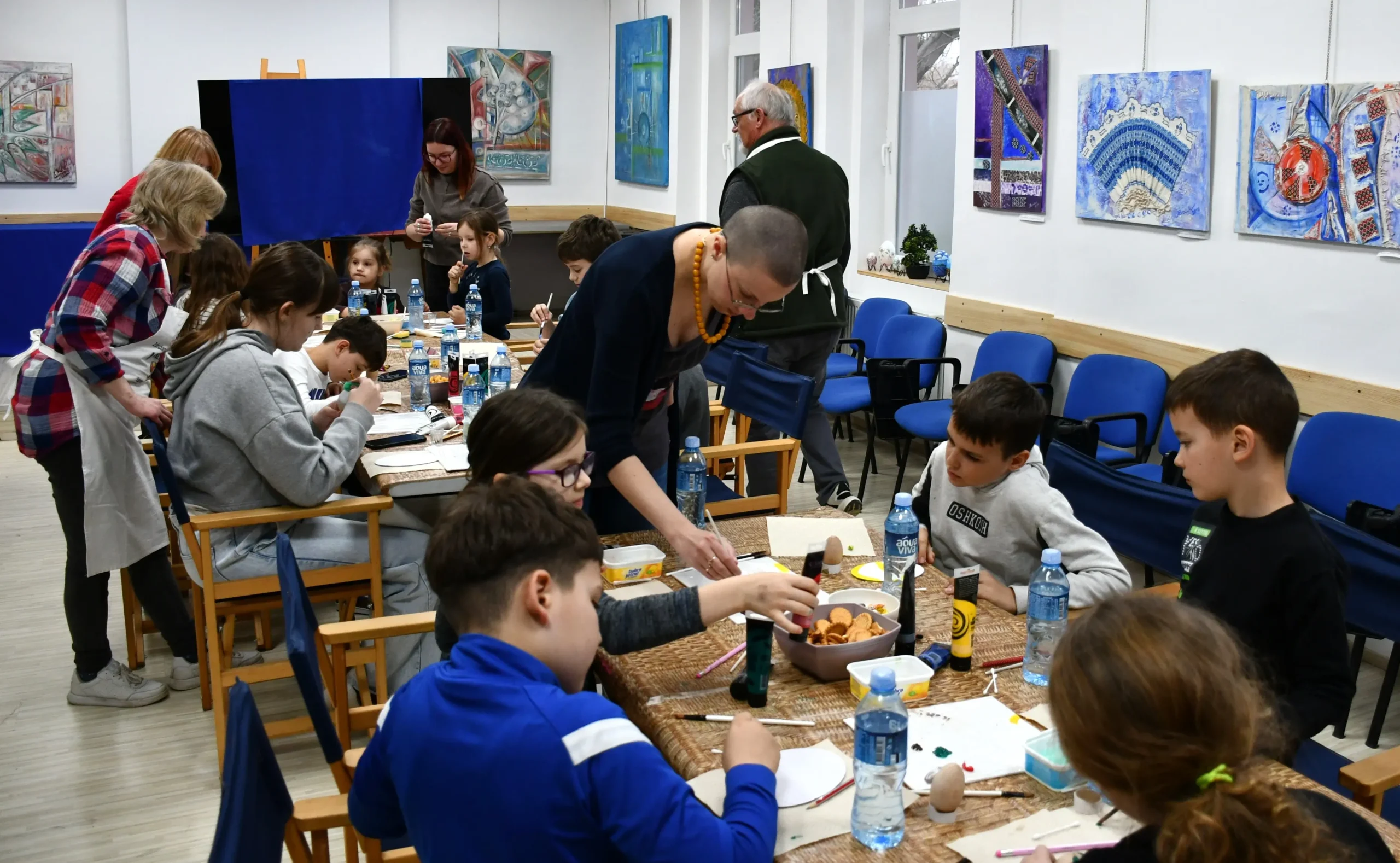„Tretiu sobotu sme si naplánovali viac sa venovať deťom. Teší nás, že je záujem veľký. Pracovalo tu 15 detí a ponúkli sme im vyskúšať sa v štvorakých kreatívnych prácach. Je to omaľovanie akrylom drevených vajíčok, tiež omaľovanie plátna v tvare vajca, a potom aj ambientné kreácie s drôteným základom, kde mali možnosť vytvoriť vlastné kreácie za pomoci rôznych doplnkov podľa svojich predstáv. Pri tejto voľnej téme sa prejavila imaginácia, takže mali veľkú chuť a pekne sa im darilo a všetko, čo vytvorili, vzali si aj domov, aby okrášlili vlastné príbytky na nastávajúce veľkonočné sviatky. Dielne boli spoplatnené preto, že to nemáme odkiaľ hradiť, a preto tak, ako si to hradia aj naši členovia, aj ostatným sme sprístupnili dielne za symbolickú cenu zadováženia potrebného materiálu. Zorganizovali sme aj tím, ktorý dozeral a pomáhal účinkujúcim a teší nás, že záujemcovia si užili proces tvorby a naučili sa s nami aj niečo nové,“ pridala predsedníčka umelcov.