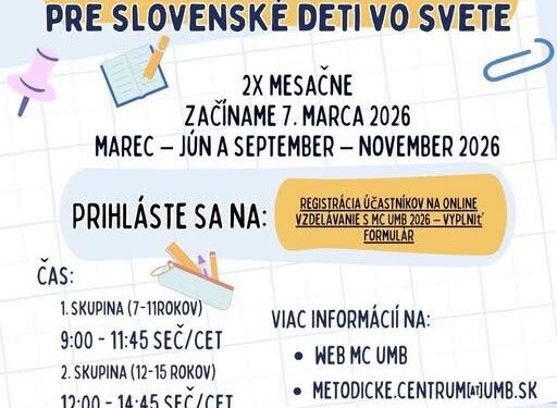 Metodické centrum pre Slovákov žijúcich v zahraničí Univerzity Mateja Bela v Banskej Bystrici pokračuje v realizácii online vzdelávania pre všetky slovenské deti v zahraničí. Projekt je realizovaný v gescii Úradu pre Slovákov žijúcich v zahraničí.