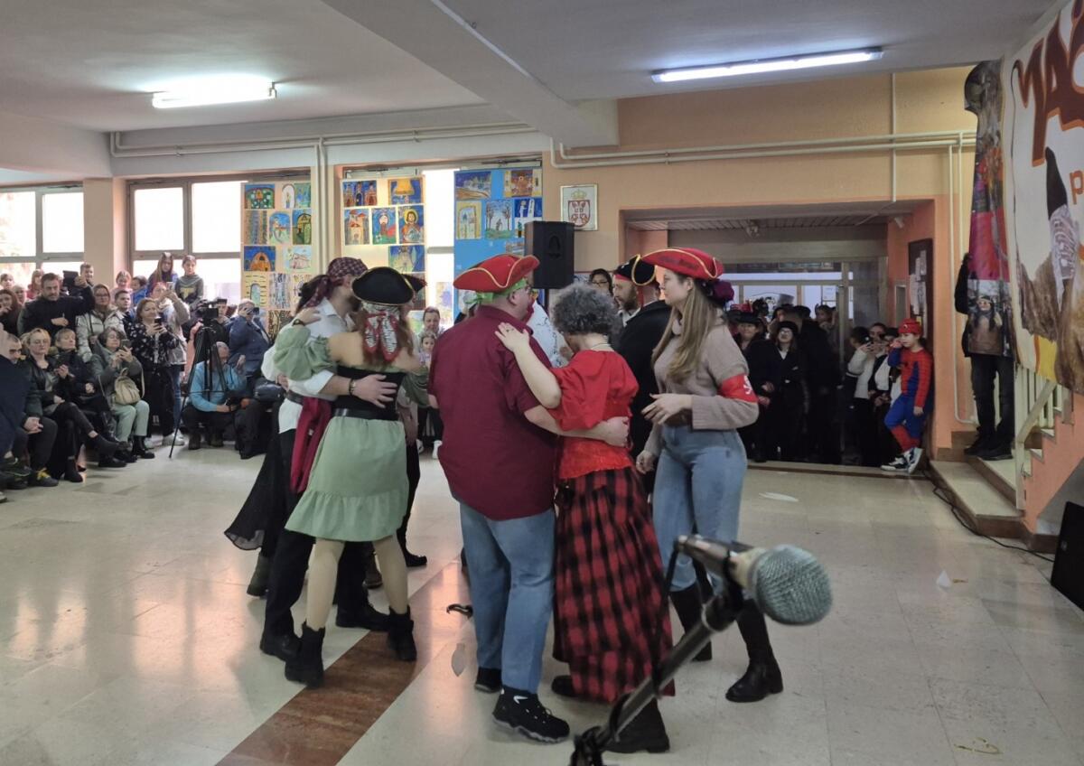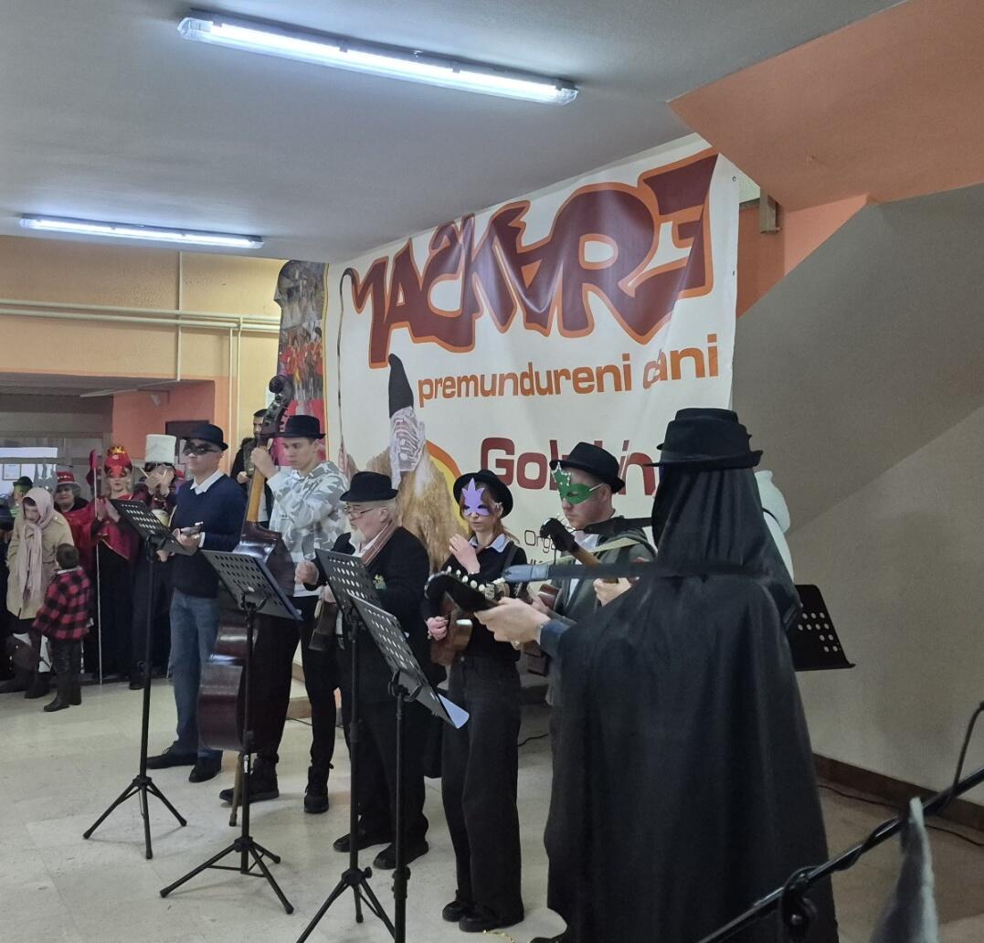 Pre nepriaznivé daždivé počasie namiesto karnevalového sprievodu ulicami Golubiniec a ústredného programu pred zámkom Šlos Mačkare 2026 dnes v popoludňajších hodinách sa museli uskutočniť v aule ZŠ 23. októbra, kde sa konala prehliadka vyše 200 maskovaných účastníkov podujatia. Okrem predstaviteľov z viacerých miest Srbska tentoraz zahraničnými hosťami boli účastníci z Chorvátska, z Đakova.