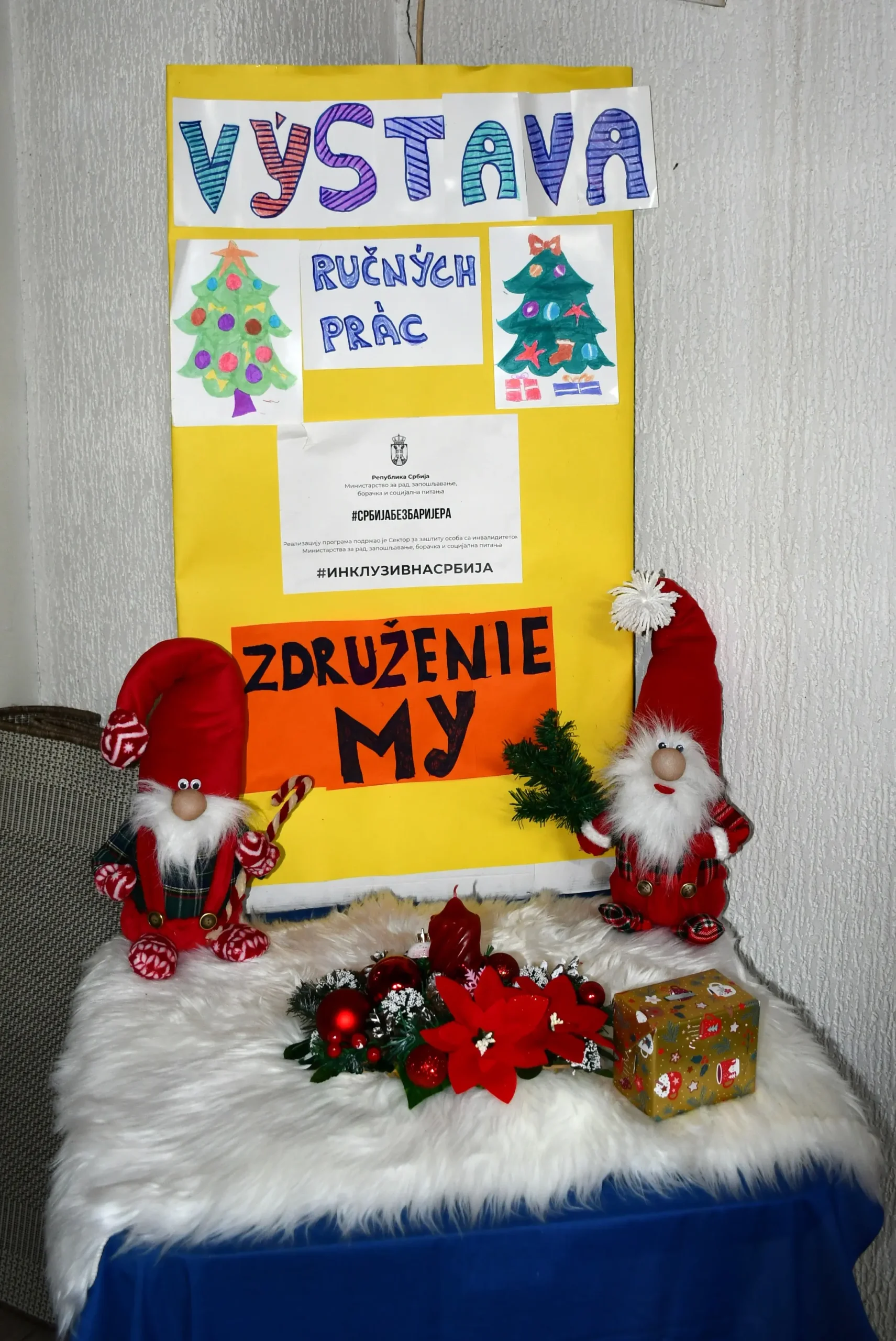 „Pri príležitosti 3. decembra, Medzinárodného dňa invalidity, v Združení MY si aktívne pripomíname na tento dátum a aj teraz sme pripravili výstavu ručných prác na tému Vianoc a Nového roka. Podieľali sa na nej všetci jedenásti členovia, ktorí chodievajú na naše pracovné rehabilitačné dielne. Výstava je čisto ukážková, nepredajná. Touto výstavou chceme upozorniť verejnosť, že nenosí hendikep nás, ale my nosíme hendikep. Aj napriek tomu v tých osobitných podmienkach, ktoré je potrebné pripraviť pre našu prácu, dokážeme vytvoriť takéto výrobky,“ povedala nám sociálna pracovníčka Daniela Legíňová-Sabová.