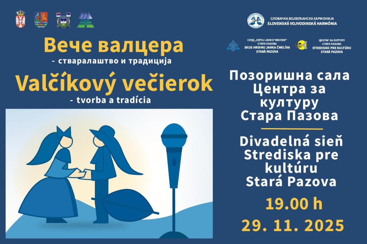 Prvý valčíkový večierok v Starej Pazove sa uskutoční v sobotu 29. novembra so začiatkom o 19.00 hodine v tamojšej divadelnej sále v organizácii Združenia Slovenská vojvodinská harmónia.