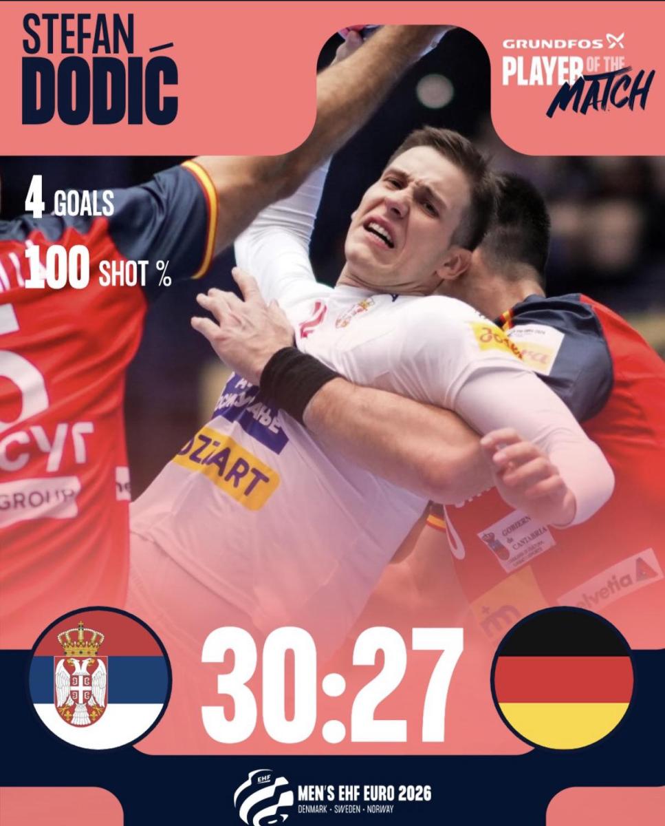 Srbsko proti favorizovanému Nemecku, olympijskému vicemajstrovi, triumfovalo výsledkom 30 : 27 a tým výrazne napravilo  dojem z prvého kola, v ktorom prehralo so Španielskom 27 : 29, aj keď aj v tom stretnutí naši mohli dosiahnuť lepší výsledok, nebyť viacerých chýb a neorganizovaných útokov.