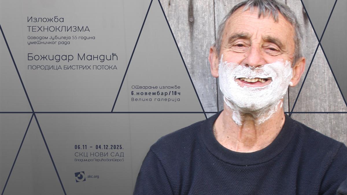 Známy novosadský konceptuálny umelec Božidar Mandić si pripomína 55. výročie vlastnej tvorby a činnosti jeho umeleckej skupiny Porodica bistrih potoka. Z tejto príležitosti bude vo štvrtok 6. novembra vo veľkej galérii Študentského kultúrneho centra Nový Sad otvorená výstava jeho prác s názvom Tehnoklizma.