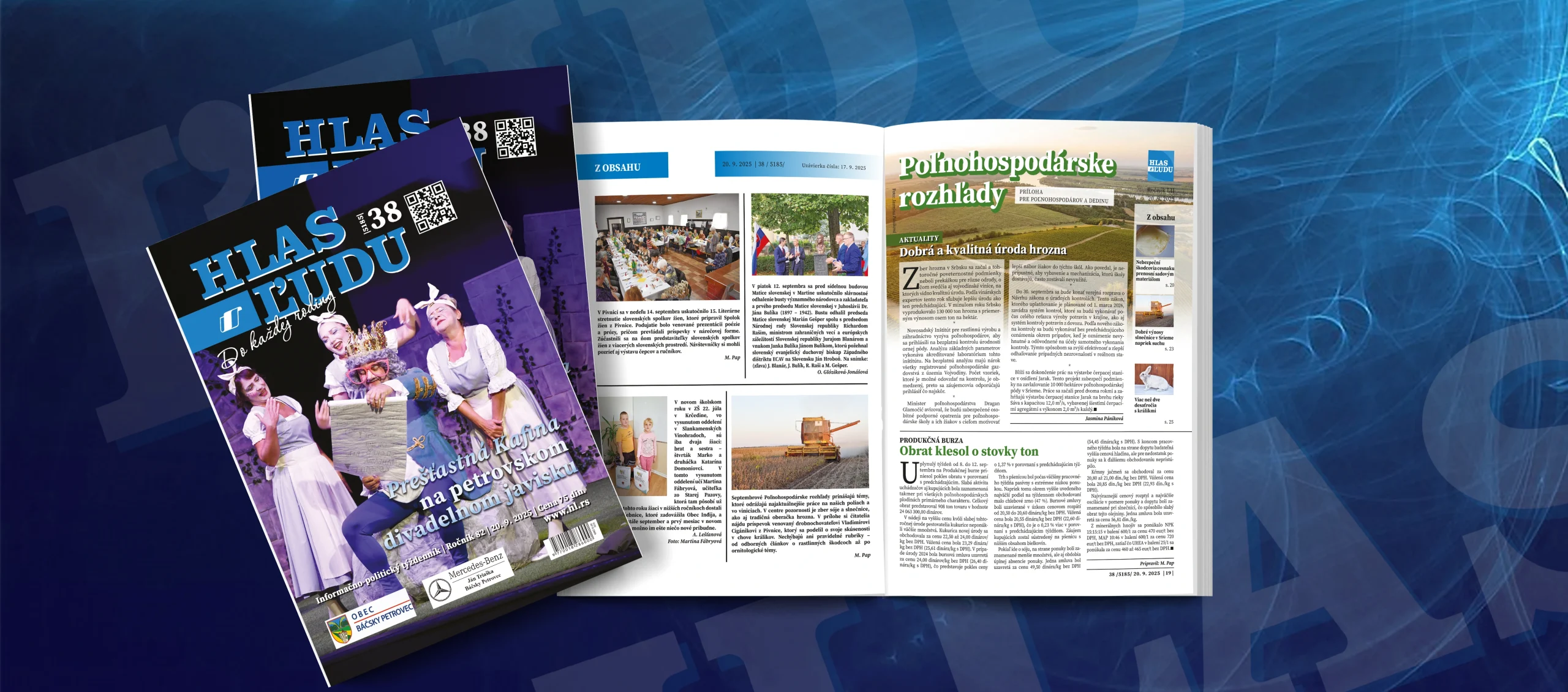 Tretie septembrové číslo týždenníka je na ceste k čitateľom. Prílohou čísla 38 sú Poľnohospodárske rozhľady. Každá z pravidelných rubrík obsahuje pútavé čítanie. Na titulke je záber z predstavenia Prešťastná Kafina zahraného na Petrovských dňoch divadelných.
